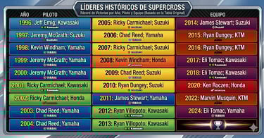 Lo de "Danger Boy" ya no es una sorpresa, es una realidad aplastante. Al asegurar el Campeonato Divisional Oeste dos rondas antes de que termine, Deegan ha alcanzado su sexto título en la Liga SMX. Con esto, se sienta en la misma mesa que íconos como Bob Hannah y Jeremy McGrath. Además, le otorga a Yamaha su campeonato número 60 en la historia de la liga, consolidando el dominio azul en el supercross moderno. Con 13 victorias en la clase 250SX, Haiden ya iguala a Jett Lawrence en el segundo lugar histórico de la categoría.