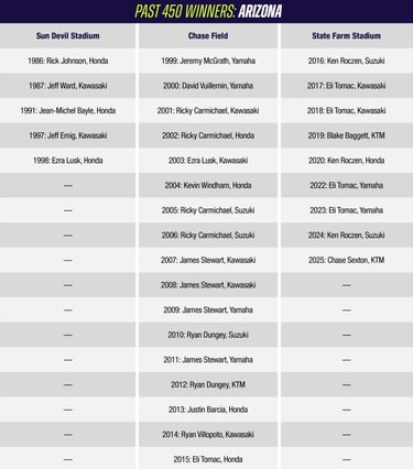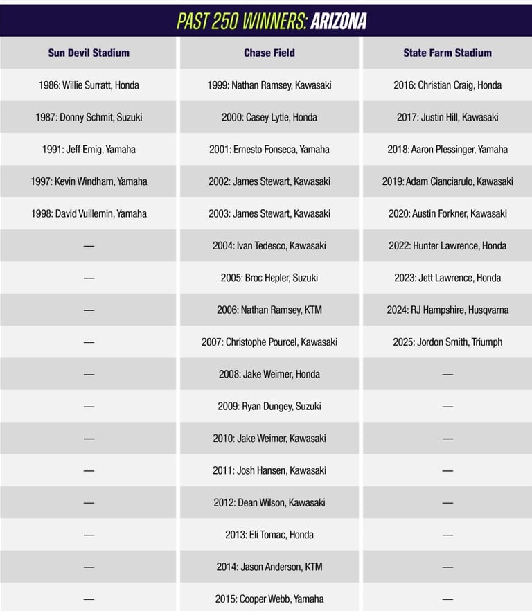 HAIDEN DEEGAN: Consiguió su victoria 11 en la clase 250SX de su carrera, empatando a Ricky Carmichael y otros ubicándose de 11" en la lista de victorias de la clase 250SX de todos los tiempos.Fue su cuarta victoria consecutiva mientras continúa alejándose en el Campeonato de la División Oeste. Busca su victoria de 30 en la liga del SMX en Seattle. Su victoria número 29 a bordo de una Yamaha lo lleva a 5 en la lista de victorias de la liga del SMX en Yamaha de todos los tiempos, ahora a solo 5 detrás de Damon Bradshaw ubicándose en la 4ta. Posición de la lista; Podría empatar con Ernesto Fonseca en el primer lugar en el 250SX de todos los tiempos de Yamaha.