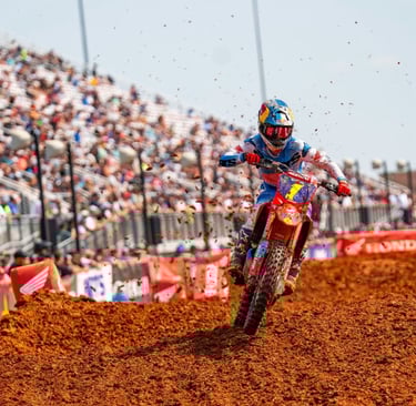 #1 HAIDEN DEEGAN: Se convierte en el atleta 30* en la historia de SMX Leage con 25 victorias, empatando a Jean-Michel Bayle y Doug Henry por 28" en la lista. Ahora ha ganado 4 de las 7 rondas de Playoffs 250SMX y ha estado en el podio en todos Siete. Él busca su carrera de 50*Podios de la liga del SMX en St. Louis y tiene una ventaja de ocho puntos sobre Jo Shimoda. Ambos buscarán en St. Louis doble puntaje.