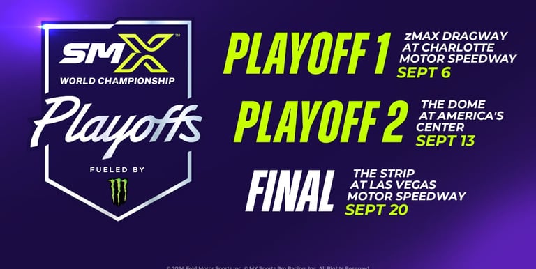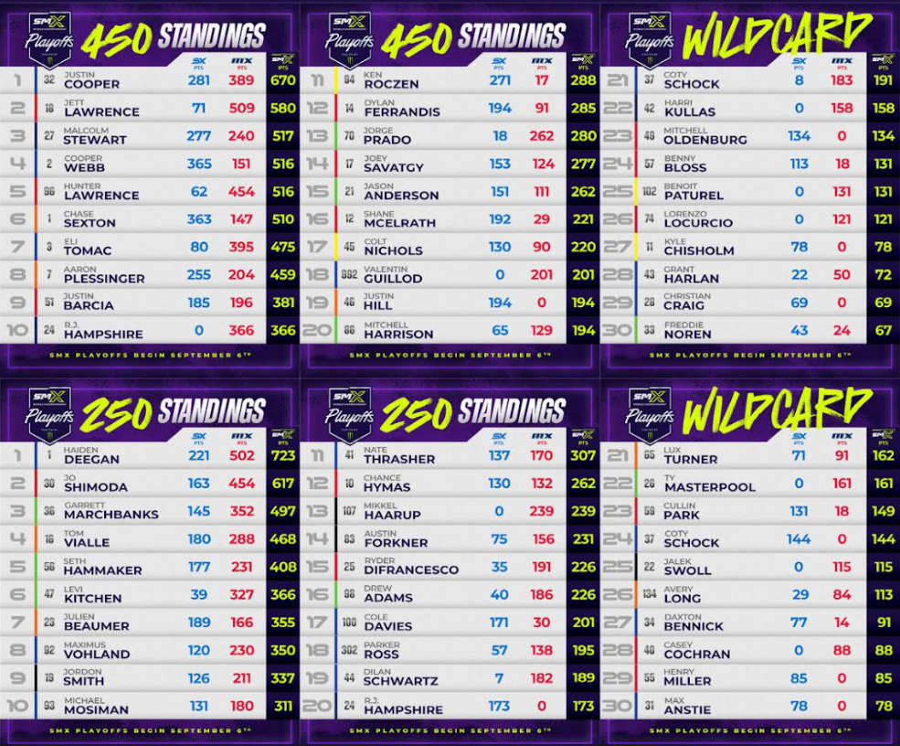 Z-MAX Dragway de Concord fue la primera ronda de SMX Playoff en 2023 y fue fenomenal. Chase Sexton (Honda) barrió ambas motos para tomar una ventaja de 12 puntos en el Campeonato sobre Jett Lawrence en la segunda ronda. Jett luchó por un 7-2 en general para el cuarto, pero se recuperó en las rondas de puntos dobles y triples para ganar el título. Lawrence se colocó en la general en la temporada pasada en MAX con un 2-1En general, mejorando la puntuación de 1-2 de Eli Tomac (Yamaha).