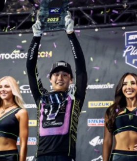 El peligroso #1 Haideen Deegan sabía que la única manera de llevarse esta contienda era derribar de una manera no intencional y quedar por encima del japonés, pero entre tantos intentos fallidos en una de las curvas antes de terminar la última moto; ambos cayeron al terreno llevando la peor parte el #1 Haiden Deegan quien se levantó con una lesión en su clavícula; mientras el japonés logró levantarse, terminando en la segunda casilla y con este resultado alcanzó los puntos necesarios para convertirse como el primer piloto japonés de ganar el Supermotocross y llevarse $500.000 en efectivo. Así mismo la categoría máxima fue otra de las más emocionantes, ya que se mantuvo una rivalidad entre tres grandes pilotos que calificaban para llevarse este máximo título; hablamos del actual campeón #1 Jett Lawrence, #96 Hunter Lawrence y #3 Eli Tomac. En la moto uno el actual campeón #1 Jett Lawrence tuvo que venir desde atrás para superar a su hermano #96 Hunter Lawrence y al líder en ese momento no solo en la carrera sino en puntos a la bestia #3 Eli tomac quien lo sorprendió en uno de los saltos más técnicos del trazado. En la segunda moto había otro tipo de escenario, ya que con la mala salida del #1 Jett Lawrence y a la vez su hermano liderando la carrera era el candidato para llevarse el campeonato, pero la felicidad de su hermano no se mantuvo por mucho tiempo, ya que el temerario #1 Jett Lawerence fue capaz de imprimir la velocidad y sobrepasar a #3 Eli Tomac para así adjudicarse la segunda posición y por ende superar a su hermano en puntos coronándose campeón por tercer año consecutivo de esta gran copa llevándose una vez más un premio de un millón de dólares en efectivo. Para más información puedes encontrarla racerxonline.com